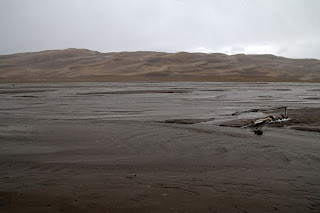 We slowly started making our way across the small shallow portion of the creek that runs right along the bottom of the dunes. Medano and Sand creeks edge the dunefield as the dunes system's lifeblood. Swift, shallow, and seasonal, they recycle sand as they water this arid valley.